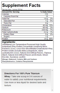PURE TITANIUM WHEY means rapid absorption into the bloodstream, and that makes it the ultimate choice for getting key anabolic and anti-catabolic nutrients into your system as fast as possible. Plus, the anabolic effect of our protein blend has long-lasting effects—up to 4 hours.